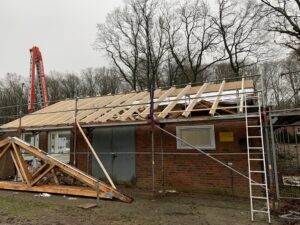 Abriss und Neuaufbau des Dachstuhls auf dem Bestandsgebäude