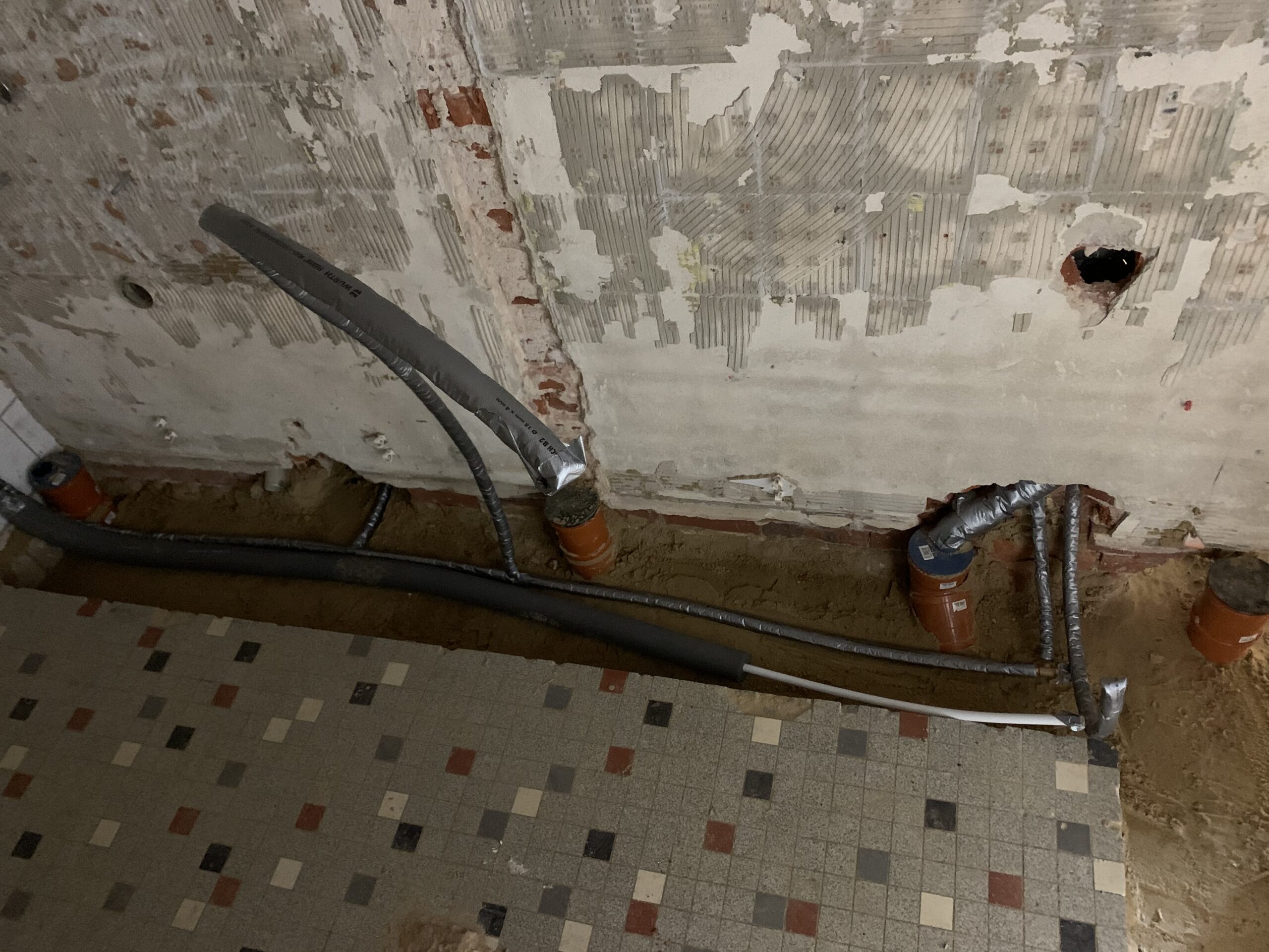 Vorbereitungen für die Grundleitungen im Bestand